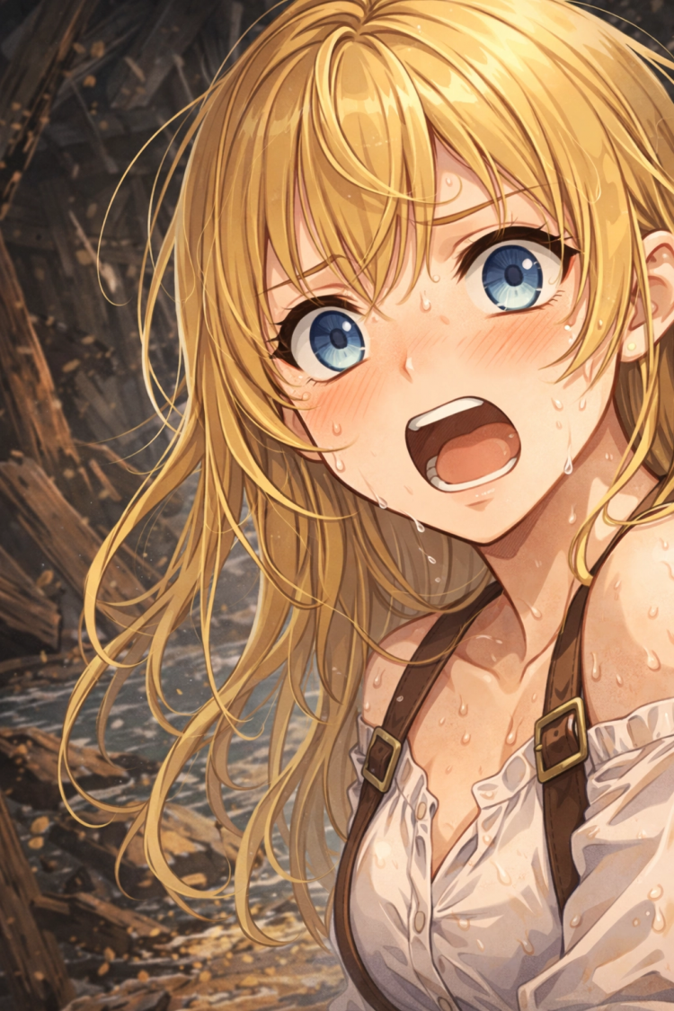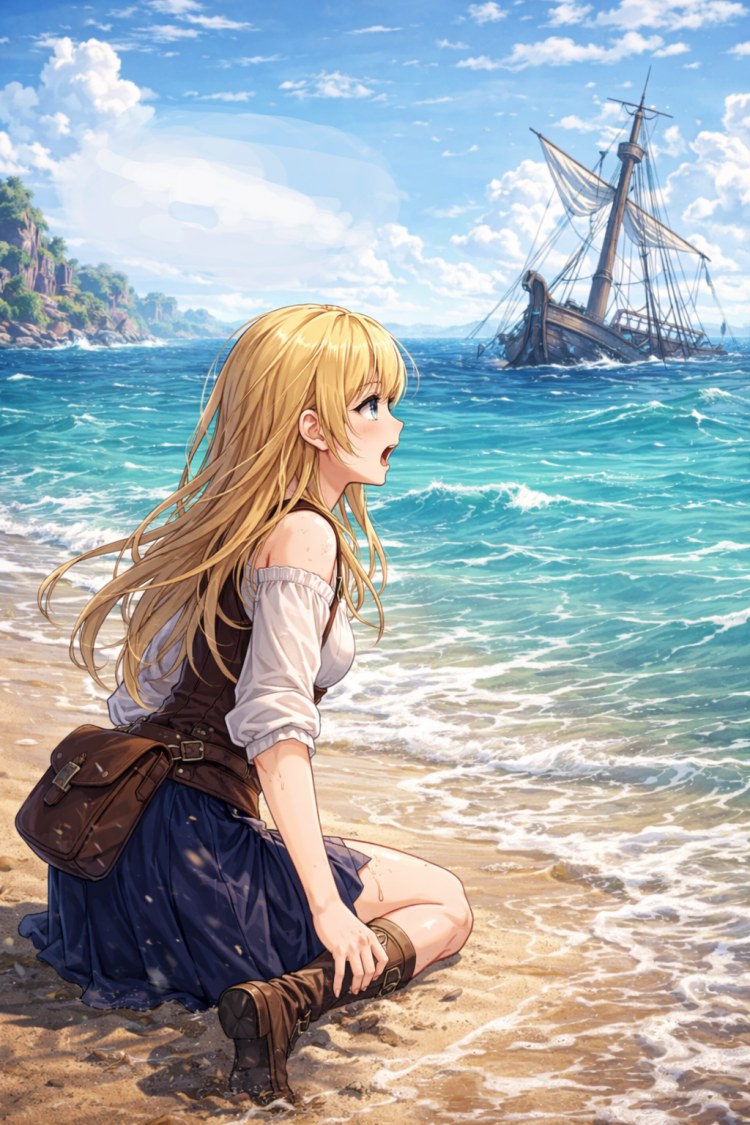 부서진 돛대 끝이 마치 바다가 “봐, 여기 있어” 하고 손가락질하는 것처럼 튀어나와 있었다. 파도에 흔들리며, 조금씩… 조금씩… 더 깊이 가라앉는 중이었다.
